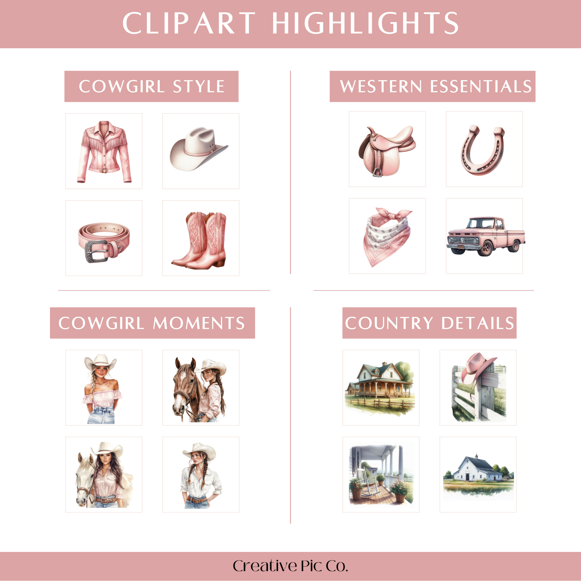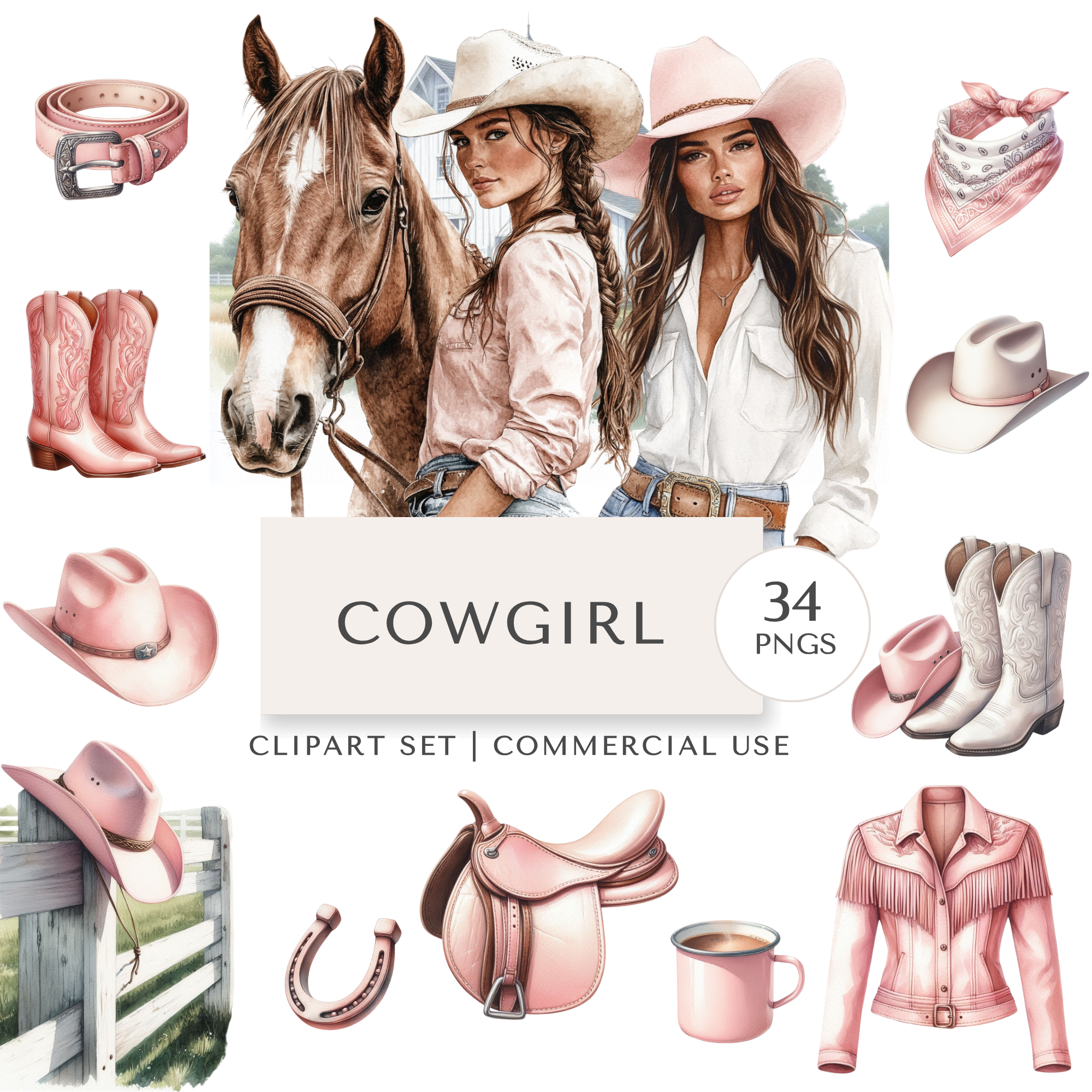 Saddle up! This Cowgirl Clipart Set is full of charm, grit, and feminine Western flair. Featuring 34 hand-curated PNGs, you’ll find classic cowgirl boots, wide-brimmed hats, pretty pink saddles, horses, and ranch moments that feel straight from the prairie. It’s soft, stylish, and perfect for adding that modern country-girl energy to your creative projects, branding, or digital scrapbooks.
