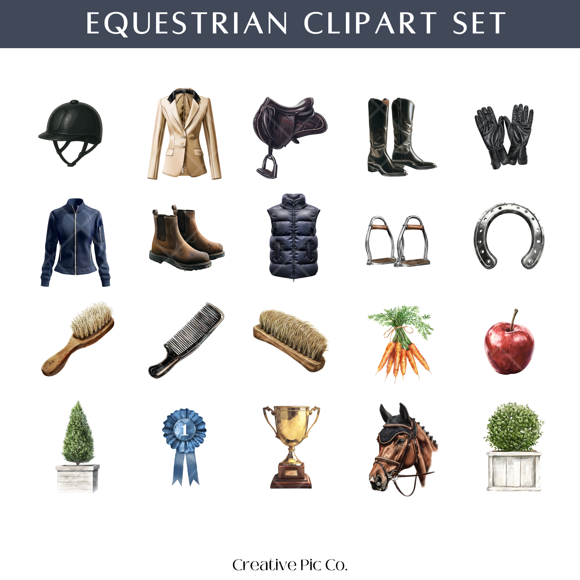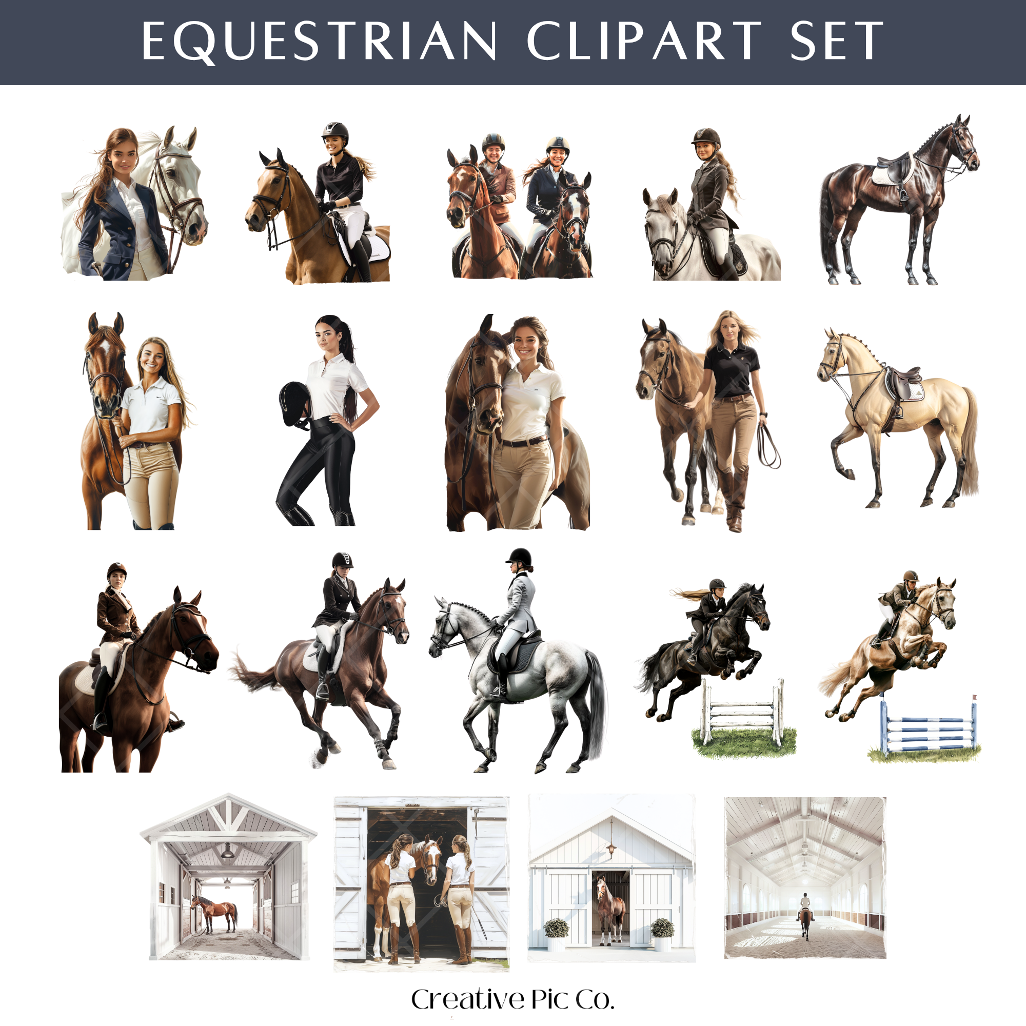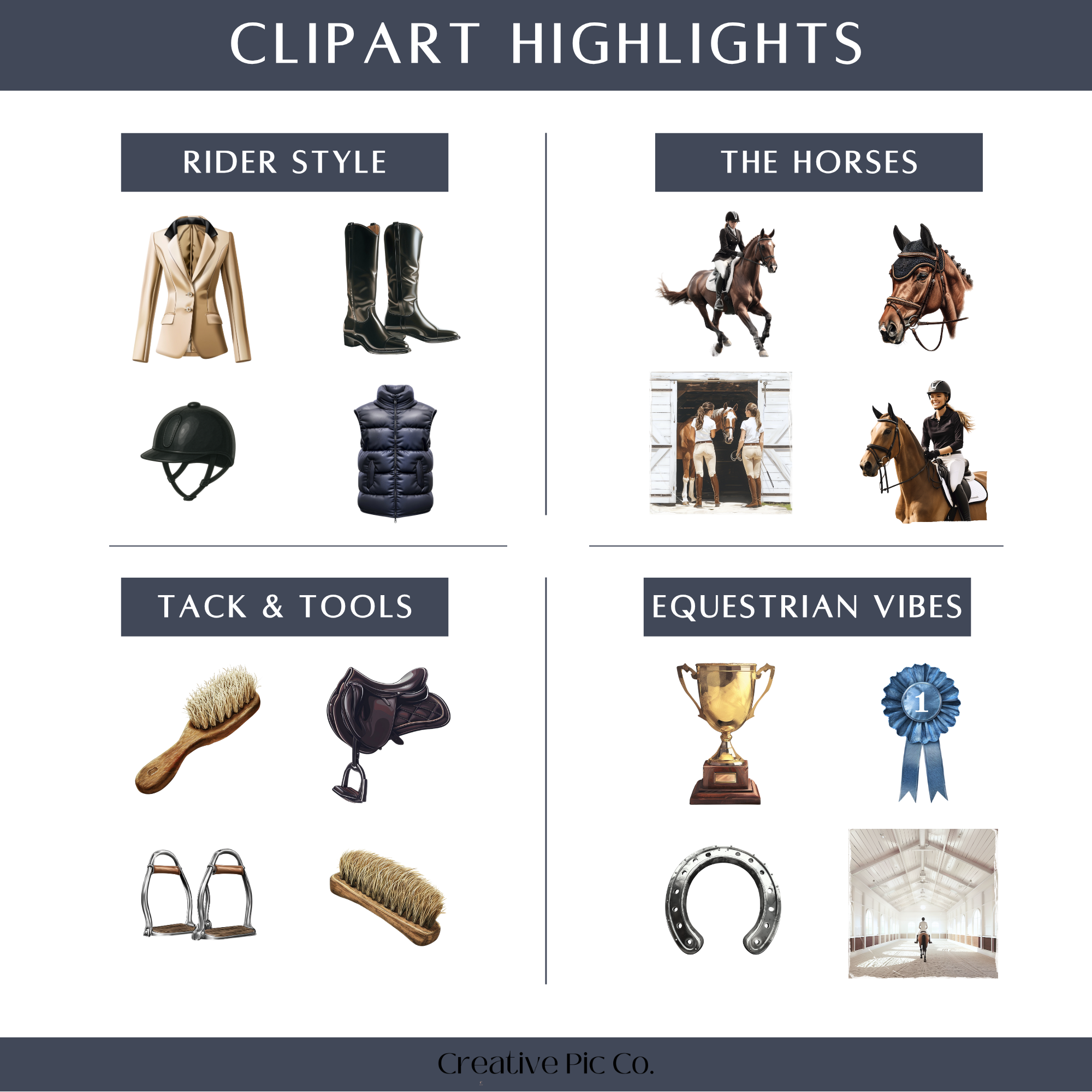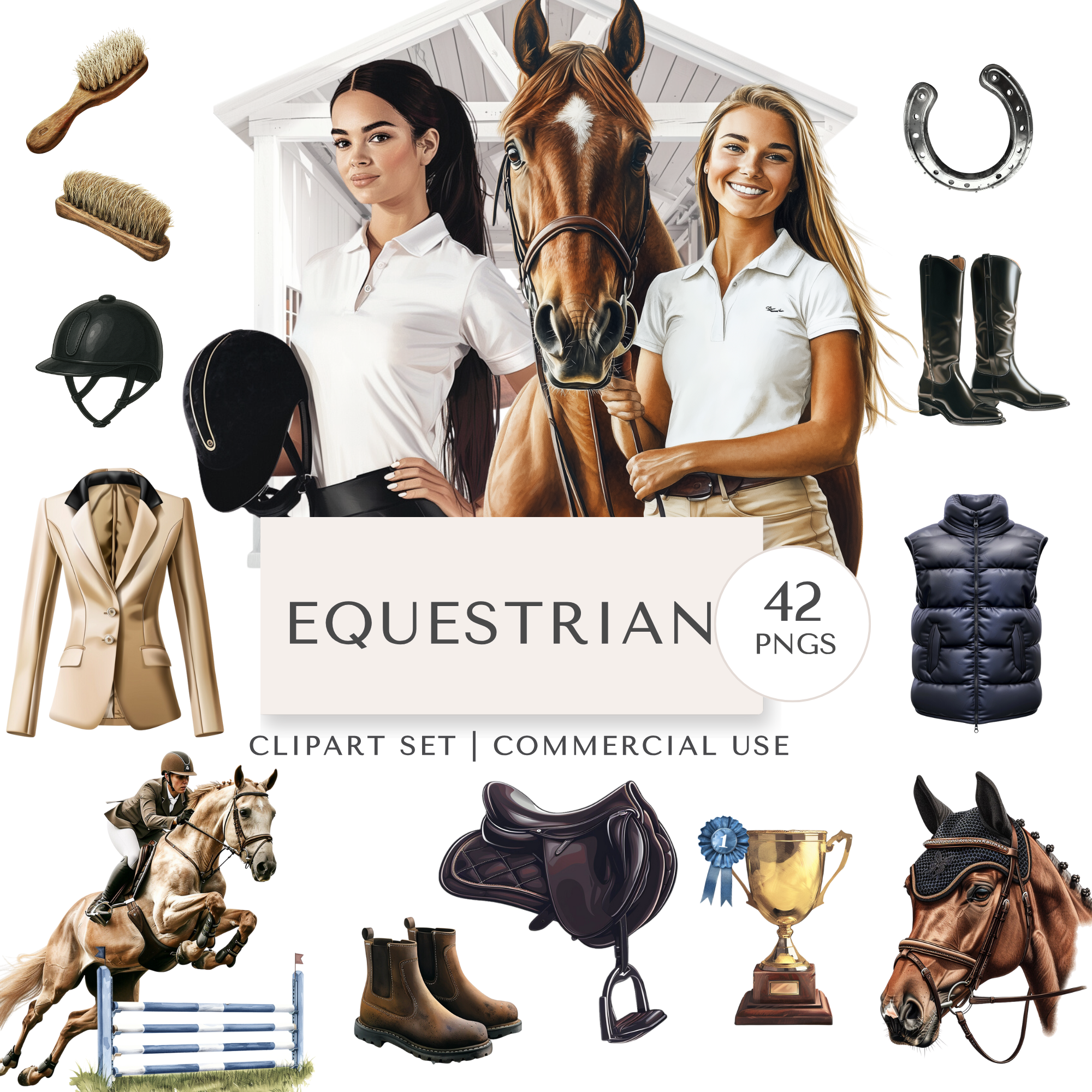 Whether you're a horse lover, rider, or just adore equestrian style, this beautifully curated clipart set brings the stables to your screen. With 42 high-quality illustrations including riders, horses, grooming gear, and riding outfits, this set captures the timeless elegance of equestrian life. Perfect for digital scrapbooking, planning, blog graphics, or equestrian business branding.