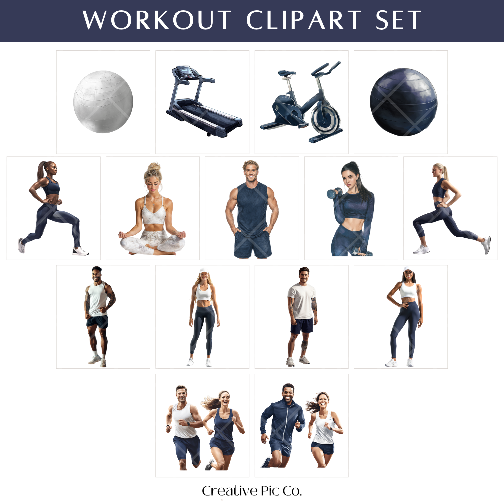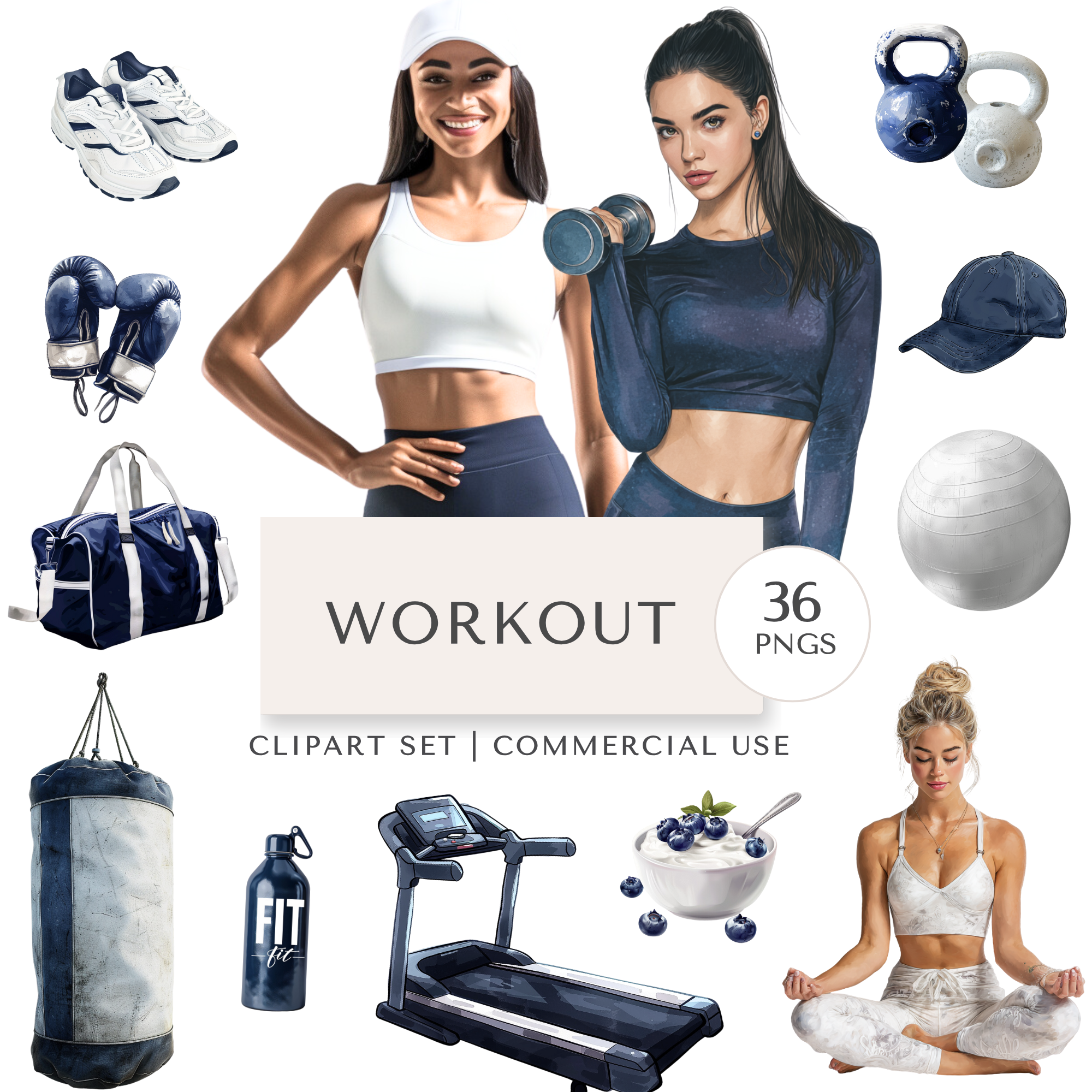 Energise your creative projects with this modern fitness-inspired clipart bundle! Featuring a mix of gym gear, workout outfits, healthy lifestyle essentials, and active characters, this set brings a clean, minimal aesthetic to planners, branding, and content creation.
